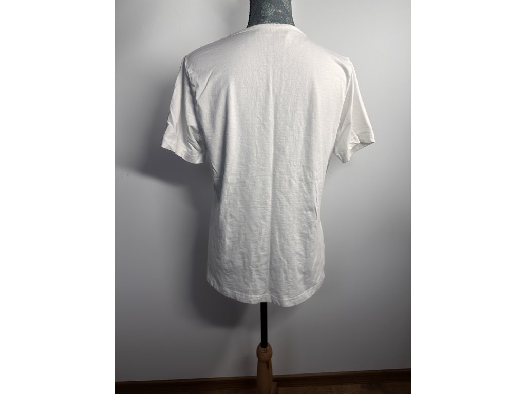 Bílé tričko od značky Denim & Co. s originálním modrým potiskem ryby. Tričko má výstřih do „V“ a mírně projmutý dámský střih, který krásně sedí. Je ušité z kvalitního materiálu – 95 % bavlna a 5 % elastan, což zajišťuje jemnost i pružnost.
