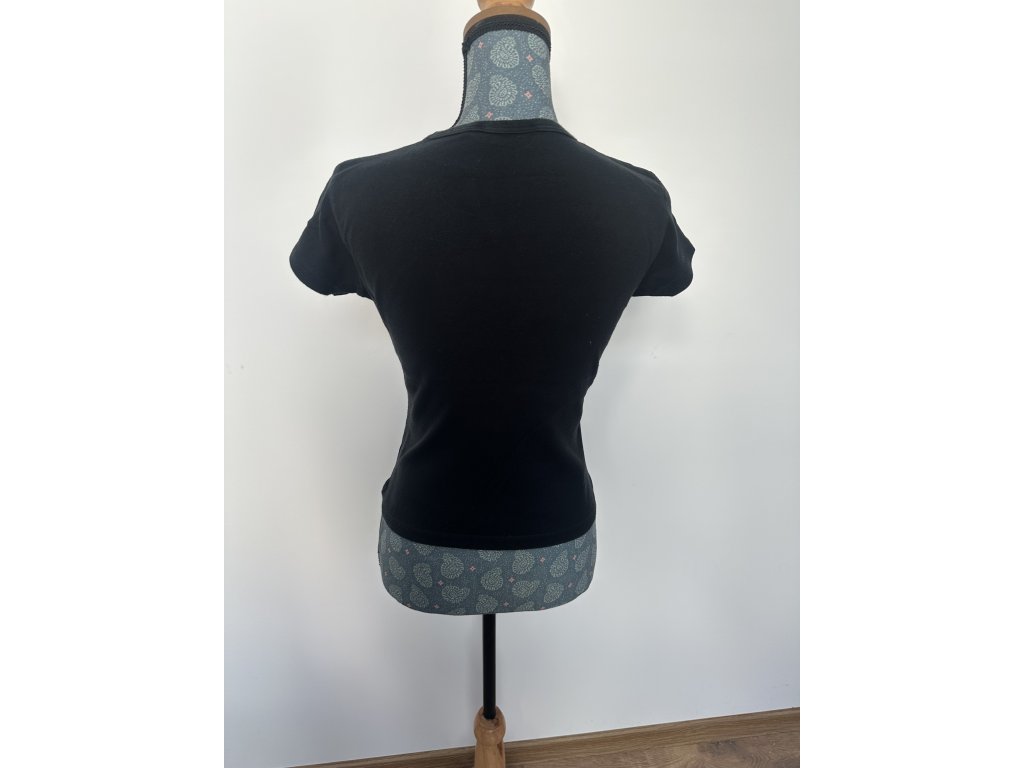 Základní černé tričko, které se hodí ke všemu. Má přiléhavý střih, klasický kulatý výstřih a je vyrobené z pevné 100% bavlny. Lehce elastické a tvarující – vhodné ke sportovnějším i ležérním outfitům. Ideální jako „základovka“ pod sako nebo mikinu, ale obstojí i jako samostatný kousek.