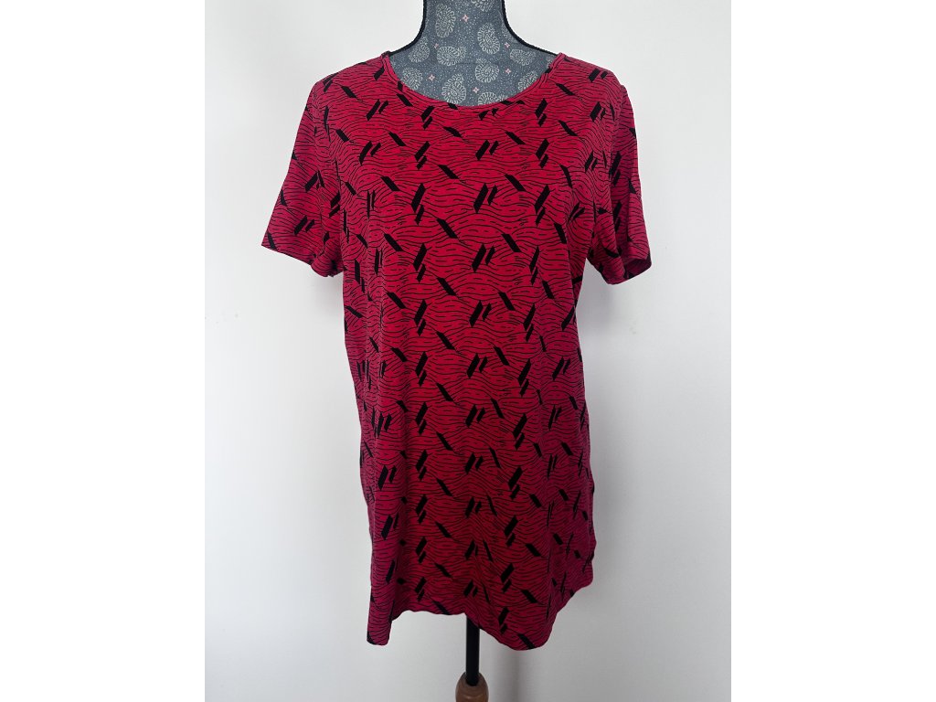 Dámské červené tričko s černým abstraktním vzorem a pohodlným střihem. 100% bavlna.