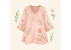 Bílý lehký top s růžovými květy a 3/4 rukávem – příjemný kousek, který působí lehce cropnutě.