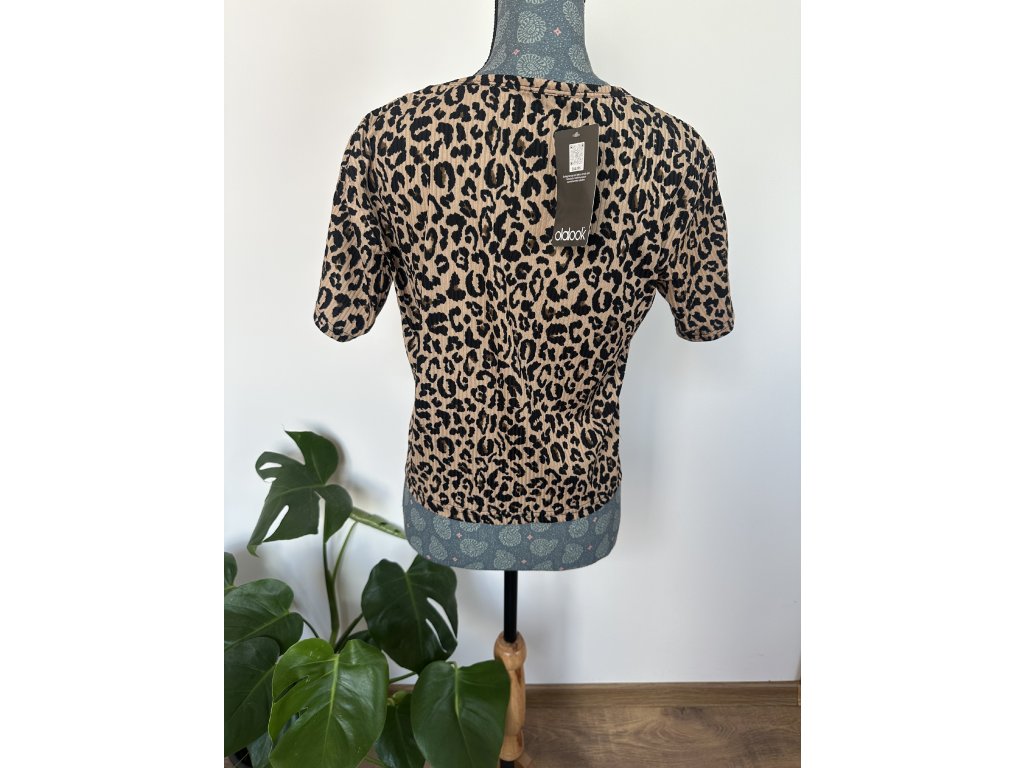 Toto elastické tričko s leopardím vzorem přináší do šatníku špetku divokosti, aniž by působilo přehnaně. Je z příjemně pružného materiálu a díky střihu jemně obepíná postavu, ale neškrtí. Velikostně odpovídá spíš S/M, přestože je na štítku XL. Hodí se k džínům i sukni a sluší sako i bunda.