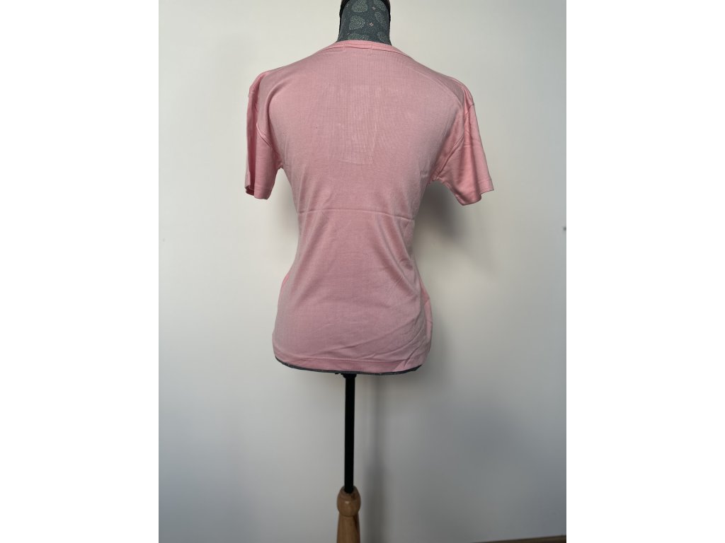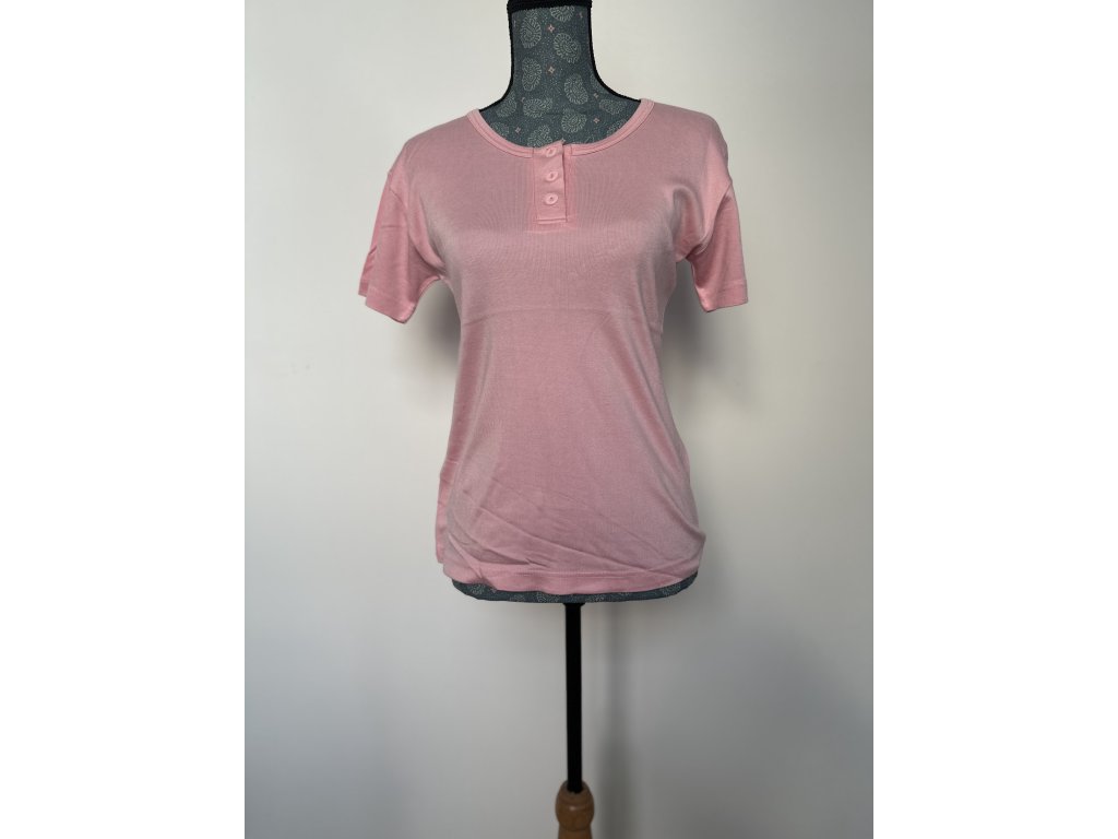 Jemné tričko v pastelově růžovém odstínu se sladkým detailem knoflíčků u výstřihu – pro chvíle, kdy chceš být jednoduše něžná.