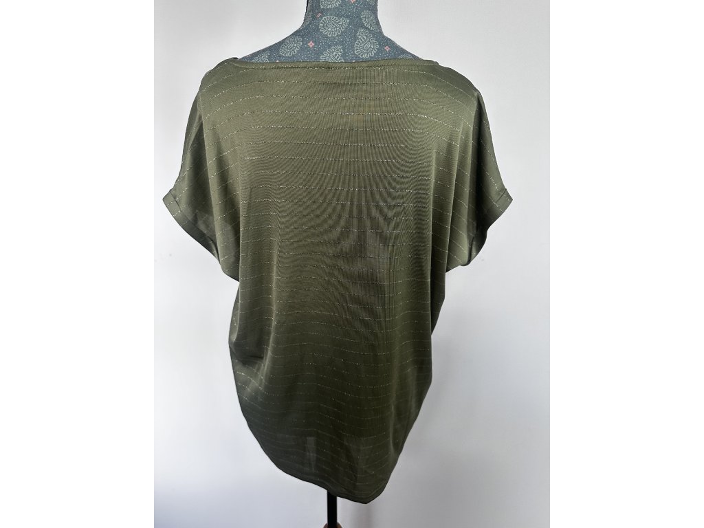 Volnější khaki triko s jemnými třpytivými proužky.