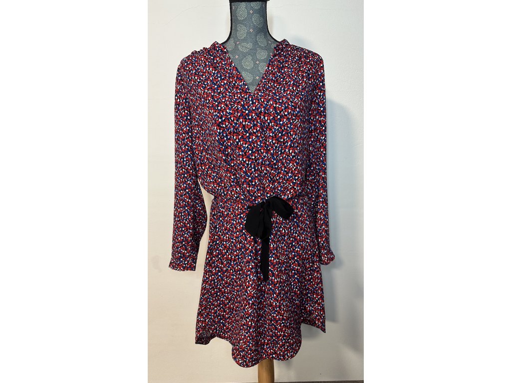 Tyto šaty od značky Promod zaujmou jemným vzorem v kombinaci červené, modré a bílé. Mají pohodlný střih, který si snadno přizpůsobíš díky zavazování v pase. Velkým plusem jsou kapsy, které dodávají šatům praktičnost i ležérní nádech. Materiál je lehký a příjemný na nošení – ideální na běžné dny i do práce.